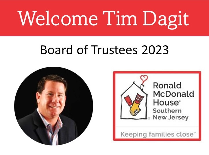 Join us in congratulating Timothy Dagit for his appointment to the Board of Trustees of the Ronald McDonald House of Southern New Jersey. As a trustee Tim will help to fulfill the Mission to bring Hope, Help, and Home for families of seriously ill children. Continuing in a spirit of service to our community, Tim will bring his personal and professional expertise as a builder and #business leader to help RMHSNJ fulfill its mission.