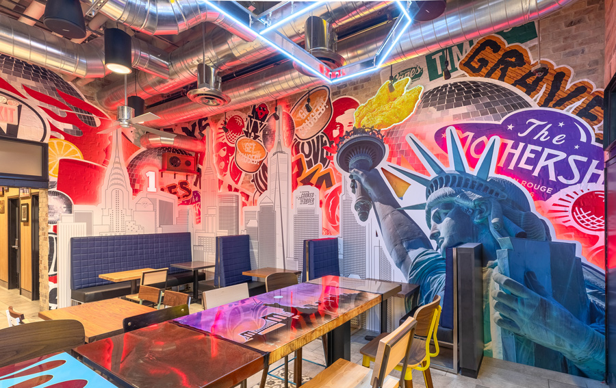 Our remarkable construction team was first in line on Opening Day as Raising Cane’s Chicken Fingers debuted in NYC with their global flagship restaurant in Times Square!!! This 8ksf restaurant brings One Love to the Big Apple in the historic Paramount Building. With a custom Mural by Artist Timothy Goodman, the most advanced ordering kiosks, custom finishes, and a statue of Cane III sporting a Lady Liberty Look, this store will certainly be on the don’t miss list of attractions in NYC!
